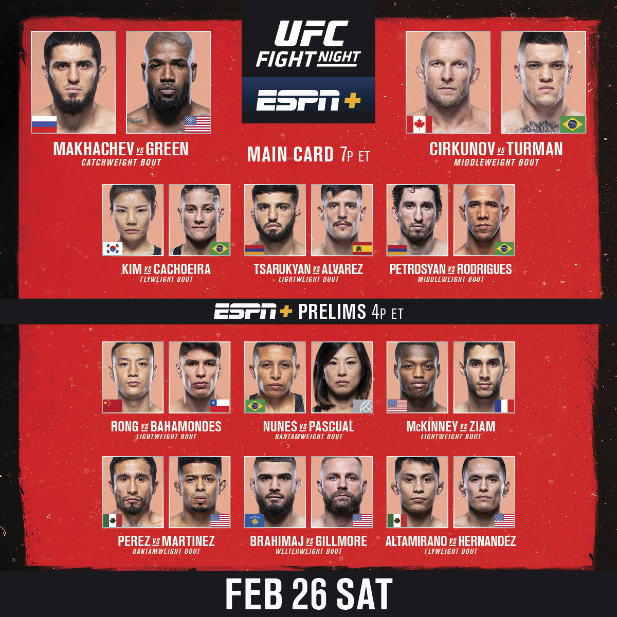๐๐๐๐ ๐๐๐ Prelims 4pmet Main Card 7pmet Live On Espnplus Https T Co Ptek4t0h2v Twitter